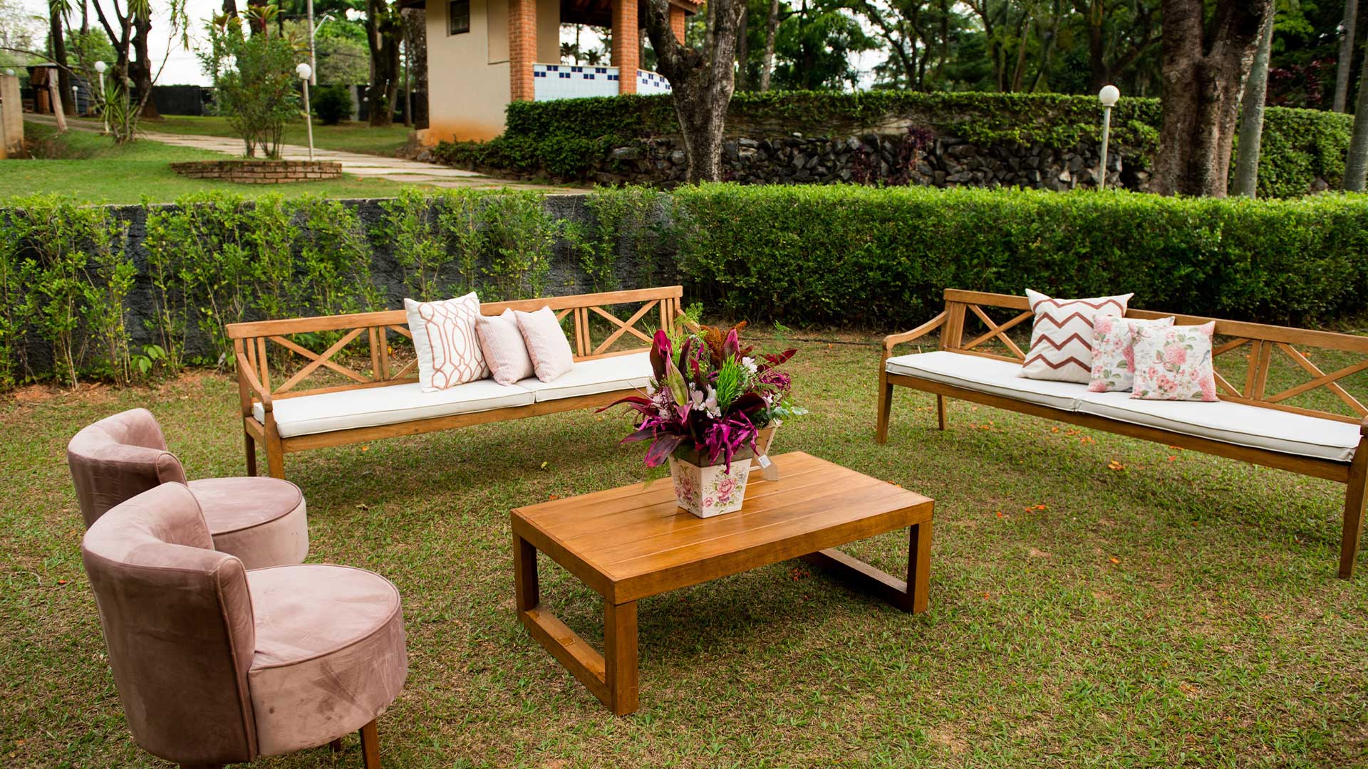 Inspirados na moradas do Tirol italiano e nas vilas ajardinadas que encantam o Alto Veneto, construímos este recanto que pretende associar conforto, natureza e bom gosto, para acolher, comodamente, Desde um mini wedding até eventos maiores para 450 convidados.